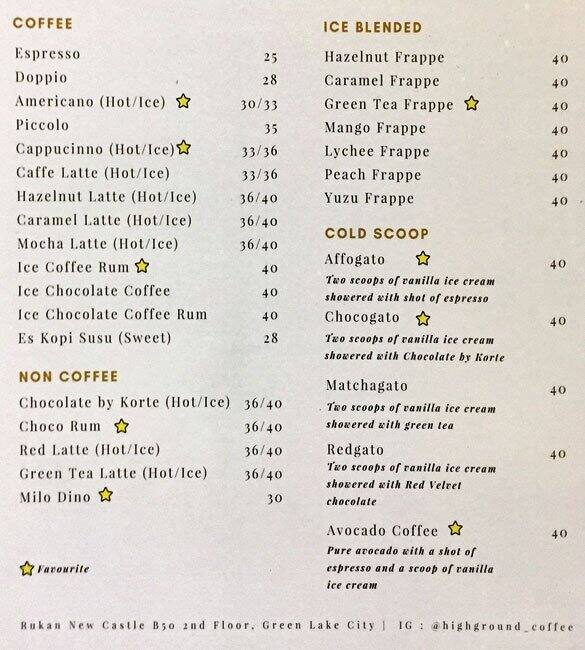 High Ground Coffee Menu Menu For High Ground Coffee Cipondoh Tangerang